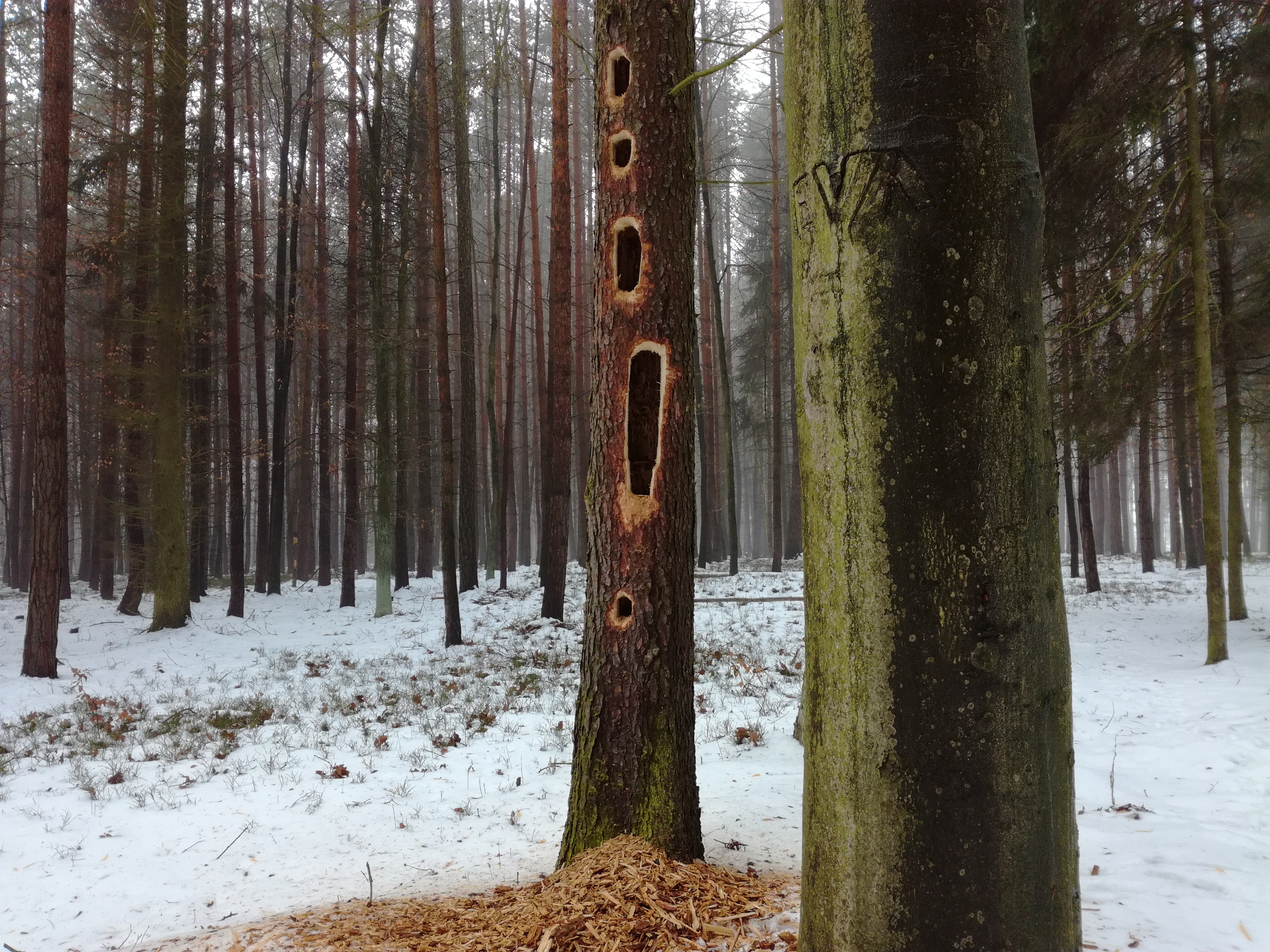 Ten strom by uschnul tak jako tak.Do zdravého stromu se strakapoudi ani datel zpravidla nepouští.Také jsem už zaznamenal takto vydlabané smrky u silnice směrem na Novou Ves.