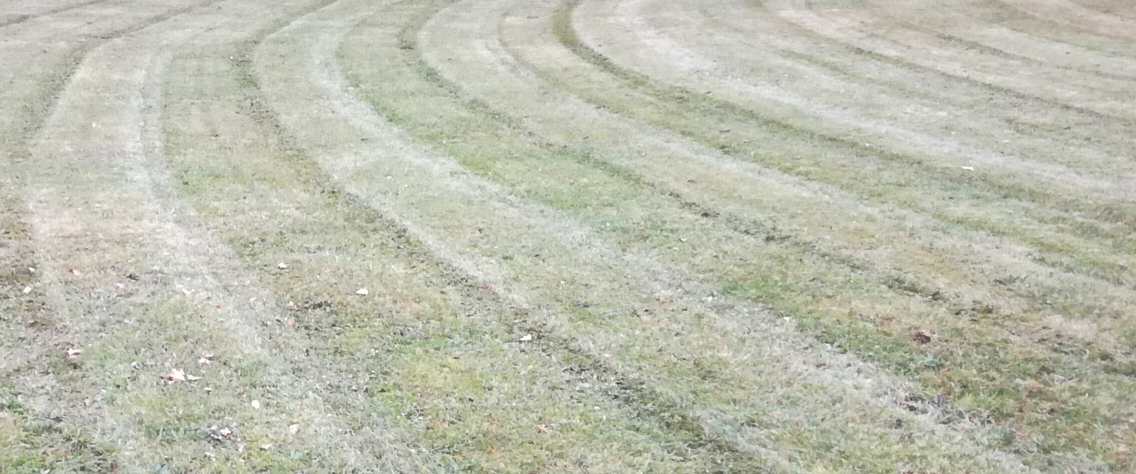 Přesně tak, jak píše kolega. Jsou to jen pruhy trávy, která je po projetí sekačkou položená. Jeden pruh tam a druhý pruh zpátky, tedy opačně. Srovná se to samo.